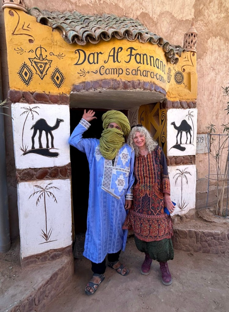Dar Al Fannana is a beautiful traditional house on the very threshold of the vast Sahara desert, it belongs to Katherine Soutar, UK illustrator and Artist and her partner Abdol Laghfiri, A Saharaoiu Nomad who grew up in this area of the desert and knows its landscape, secrets and traditions intimately.