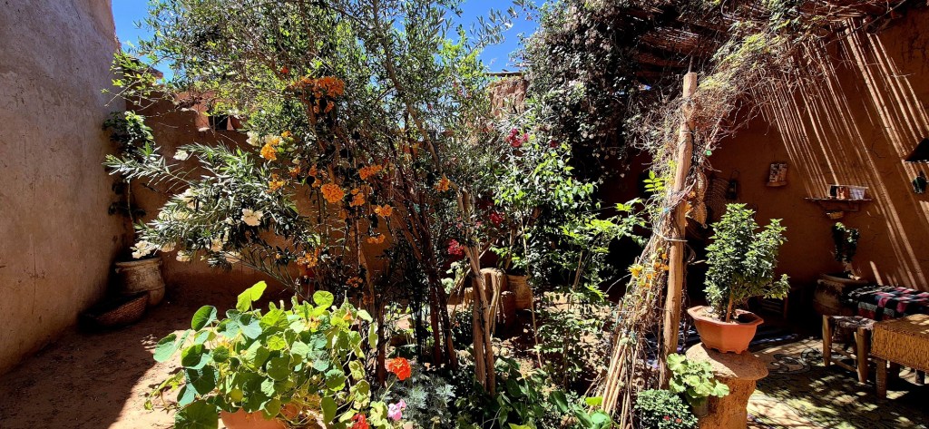 We have a small, sheltered garden and a roof terrace where you can watch the sunset over the desert