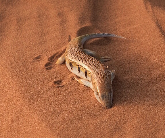 The brilliantly named ‘Sandfish’ (Scincus scincus) is a small lizard typically about 4 inches long that is native to the Sahara desert.