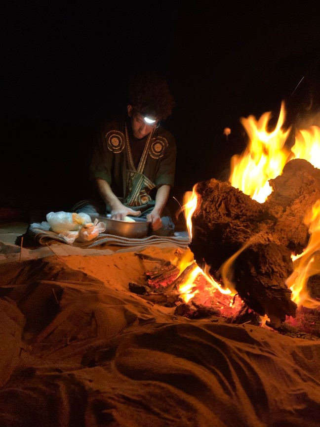 we will set up our bivouac nearby and spend the our first night in the peace of the desert. Each night we will enjoy a campfire and home cooked food with lots of the famous Moroccan tea, we provide tents but if you wish you can sleep under the stars all night.