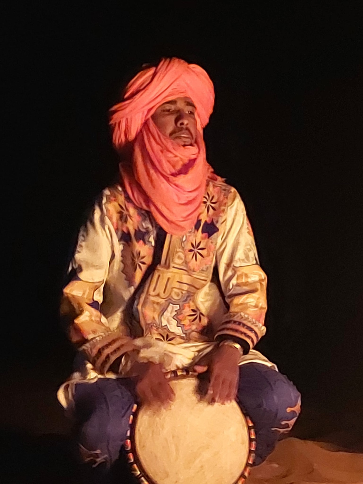 You will travel by camel or on foot into the Sahara starting after breakfast, There will be a stop for lunch and rest in a beautiful spot then we will continue until we reach the place where we will camp in the picturesque sand dunes of Erg L’ Houdi . You will have time to expore the dunes and watch the sunset before we serve you a delicious dinner. You can see sand bread made, enjoy the campfire and listen to traditional music in the evening. We are far enough into the desert to see a beautiful display of stars here too.